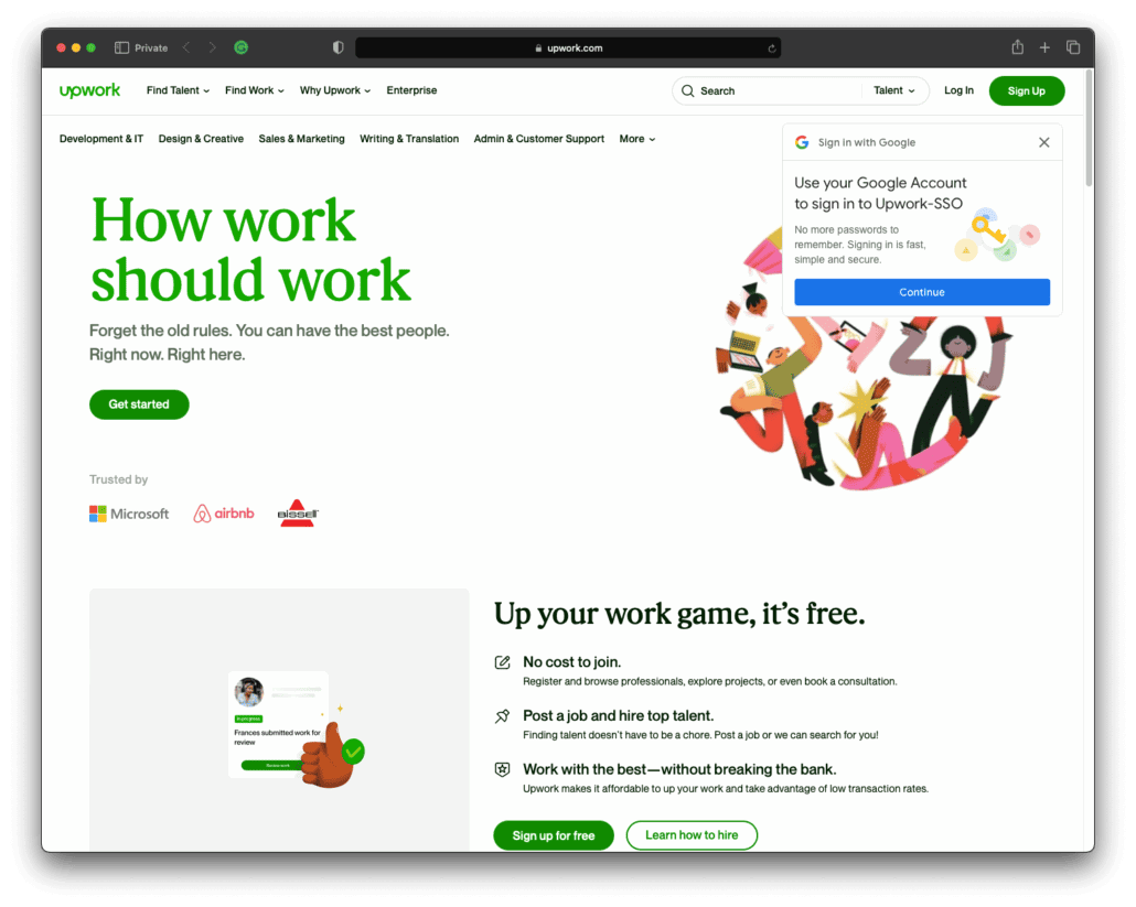 Upwork maintains a strong focus on security and employs robust verification practices to ensure a safe and trustworthy platform. To create an account, freelancers and clients are required to provide their email addresses and go through a verification process. Upwork also offers additional verification options, such as ID verification, to enhance user trust and credibility. The platform implements various security measures, including encrypted communication, secure payment processing, and monitoring systems to detect and prevent fraudulent activities. Upwork’s review system allows clients to provide feedback and ratings, fostering transparency and accountability.