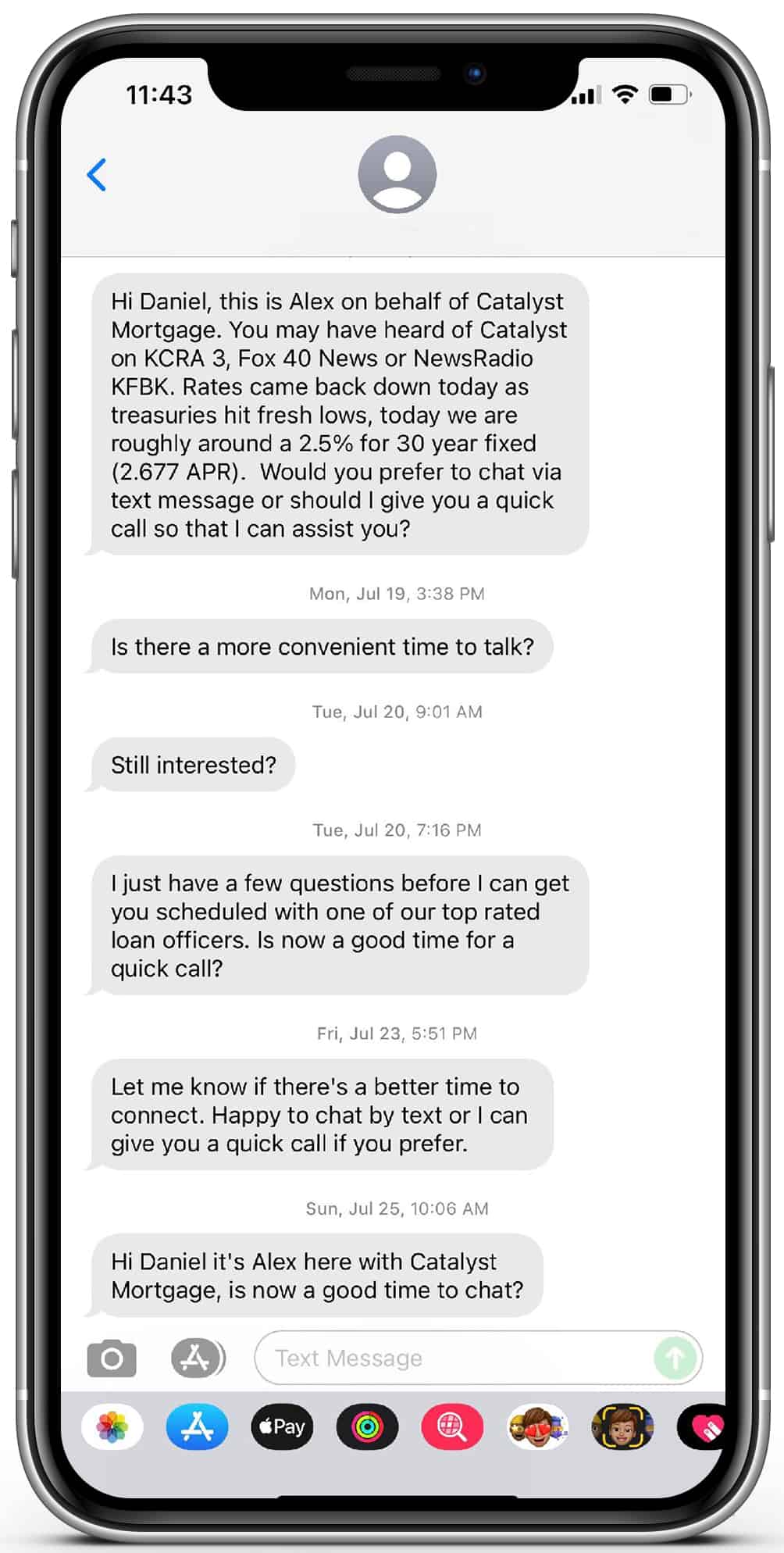 You’re probably already familiar with email marketing; drip campaigns, follow-ups, promotions, etc. You may not be familiar with this statistic though; the open rate for email is about 20%, whereas the open rate for text messages is 98%. That’s a huge difference! Why send a prospective customer an email that gets lost in spam, or buried at the bottom of their inbox? A text message goes right to the top of their communications, and it likely gets a push notification on their screen. They can’t miss it! Furthermore, 75% of surveyed Americans said they’d be happy to receive an offer via SMS. That’s practically an invitation to market to them! That actually leads me to one important point; you can’t cold message them. An SMS marketing campaign needs to be directed at people who’ve already expressed interest in some way, or straight up opted in to receive your messages. So keep it legit, or you risk not just pissing off the customer, but the law too.