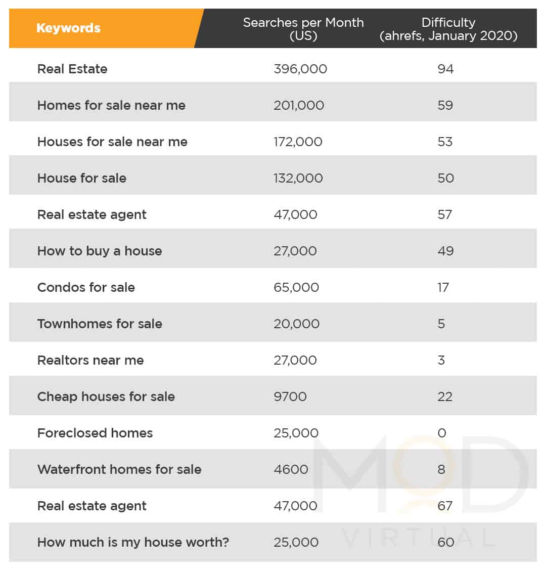 Generic keyword lists only show what most people are searching for. They DO NOT mention that most of them are almost impossible to rank for. Even Zillow has trouble ranking for some keywords!